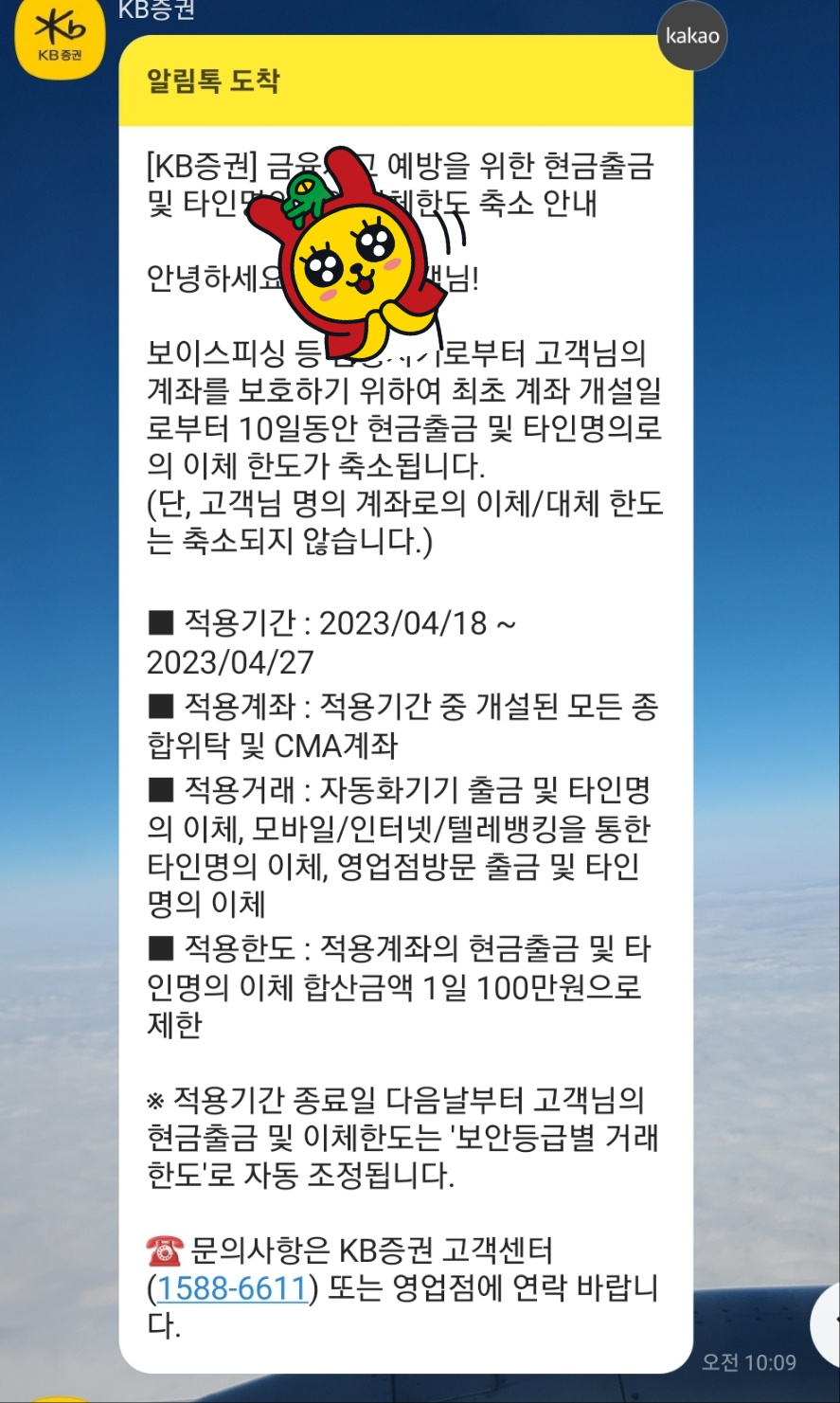 18일 저녁 모든 절차를 완료하니 카톡이 왔다